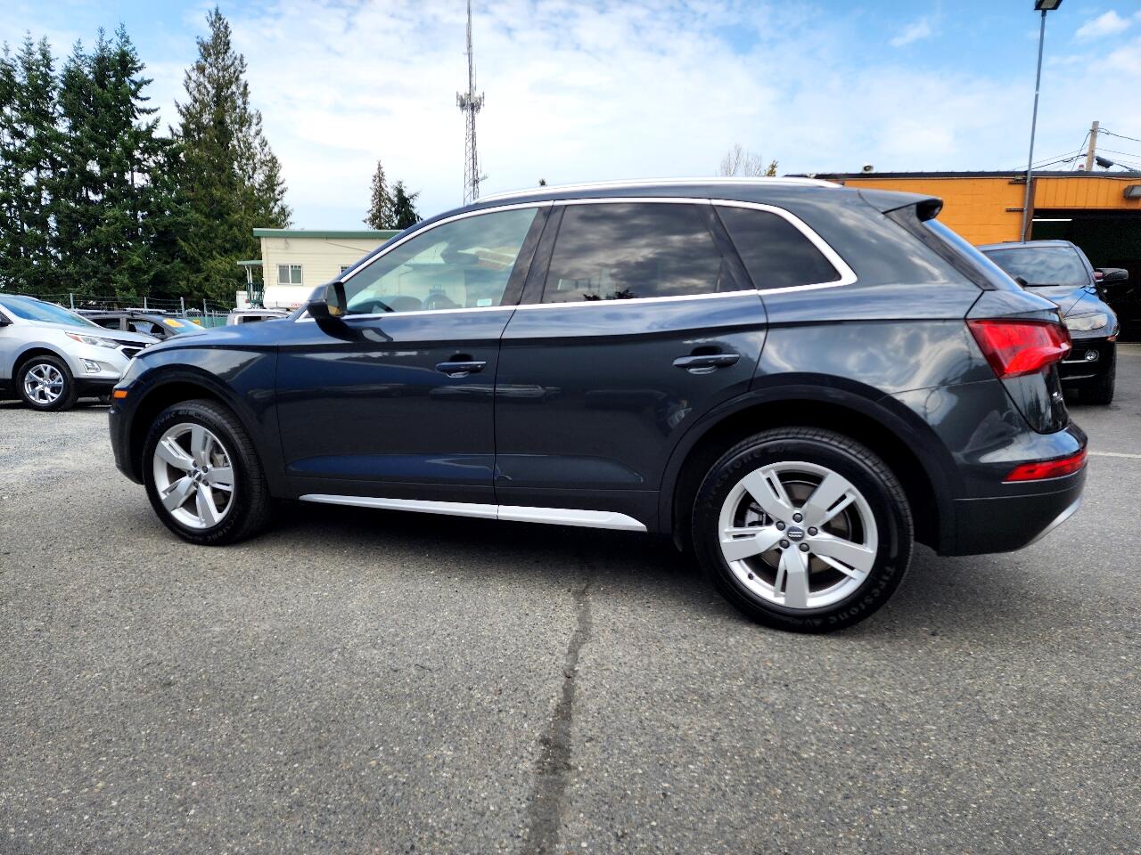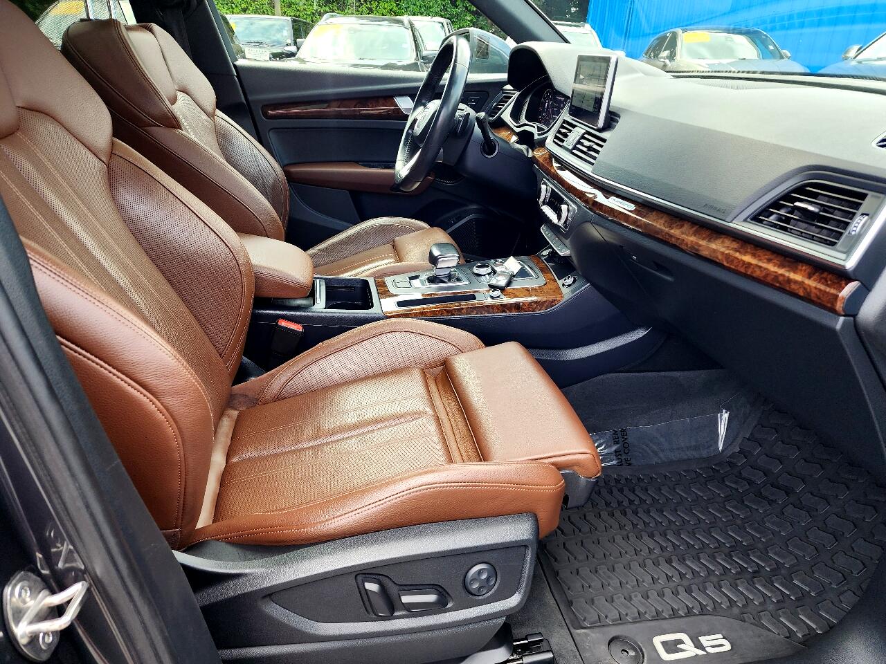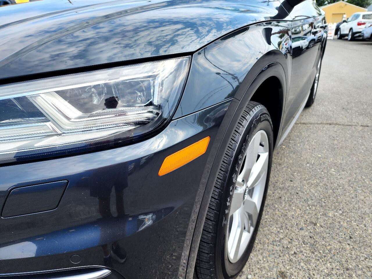 This Exceptionally Clean 2018 Audi Q5 2.0T Quattro Premium Plus is a Local Trade In, Non Smoker and Has Been Well Maintained with over 25 Reported Service Records to Carfax, It is All-Wheel Drive and Equipped with a 2.0L Turbocharged 4 Cylinder Engine that gets up to 27 mpg, Automatic Transmission, Dual Power Heated and Cooled Leather Seats, Wood Grain Trim, Tinted Windows, Heated Steering Wheel with Redundant Controls, Hands Free Phone, Automatic Climate Control, Bang and Olufsen Stereo, Dual Navigation, Rear Camera, Blind Spot Monitoring, Front and Reverse Sensing, Power Panoramic Sunroof, HID Head Lights, Power Rear Liftgate, Traction Control, Roof Rack, Rear Privacy Window Shades, Rear Rubber Mat, Polished Alloy Wheels, New Tires and more!!! Comes with a CARFAX Buyback Guarantee and is Ready for Immediate Delivery. ASC Warranty 3 year / 36,000 mile Extended Service Plans are available on most vehicles. Please verify all information and options with a sales representative.