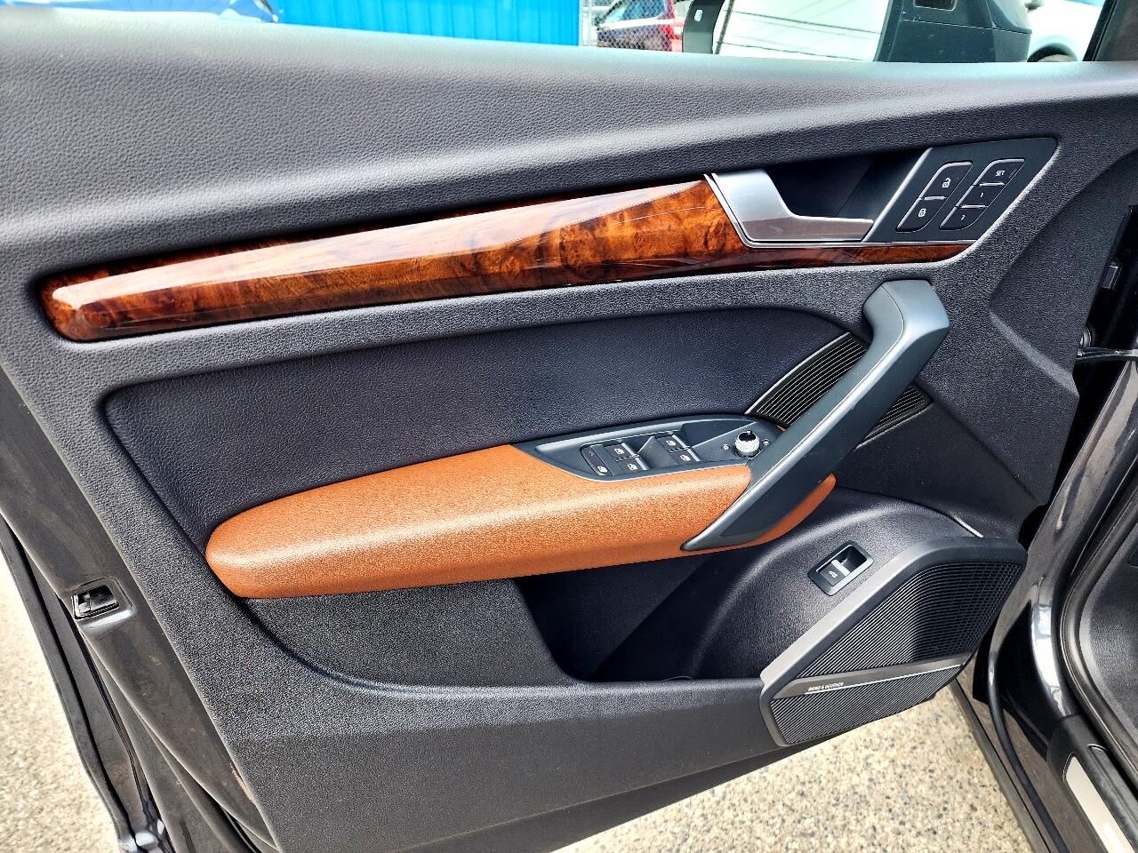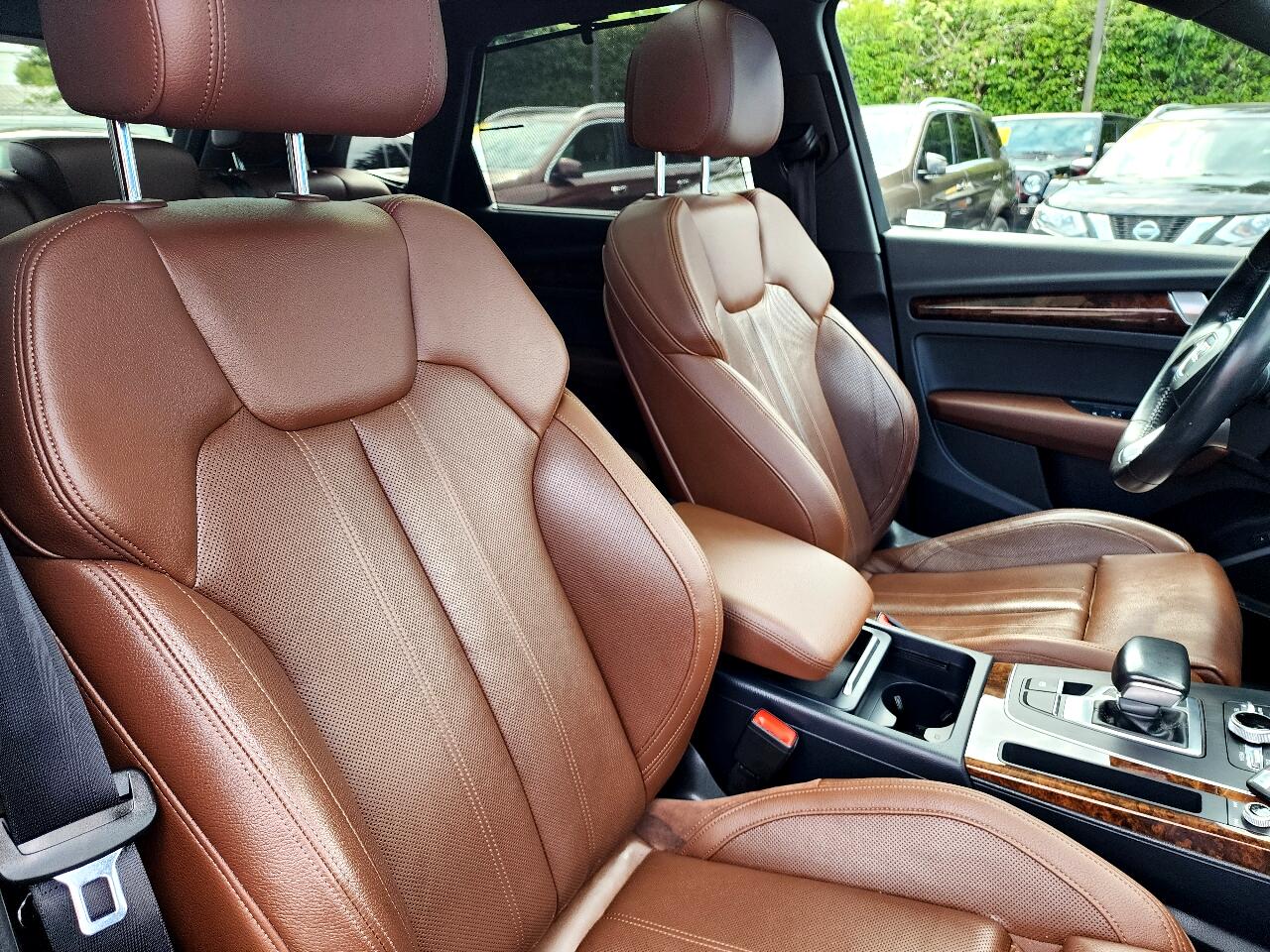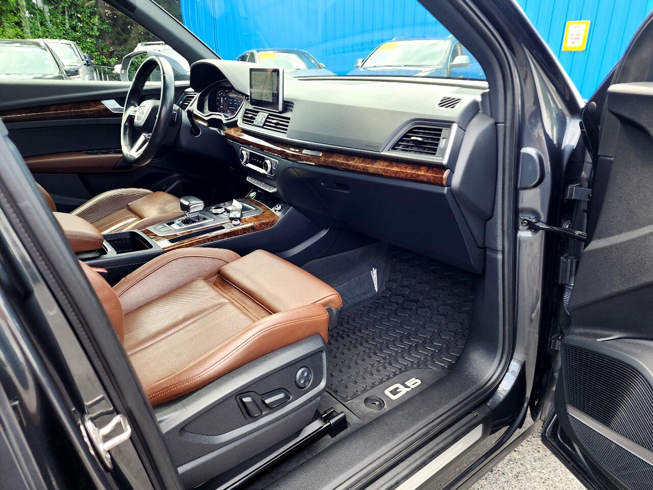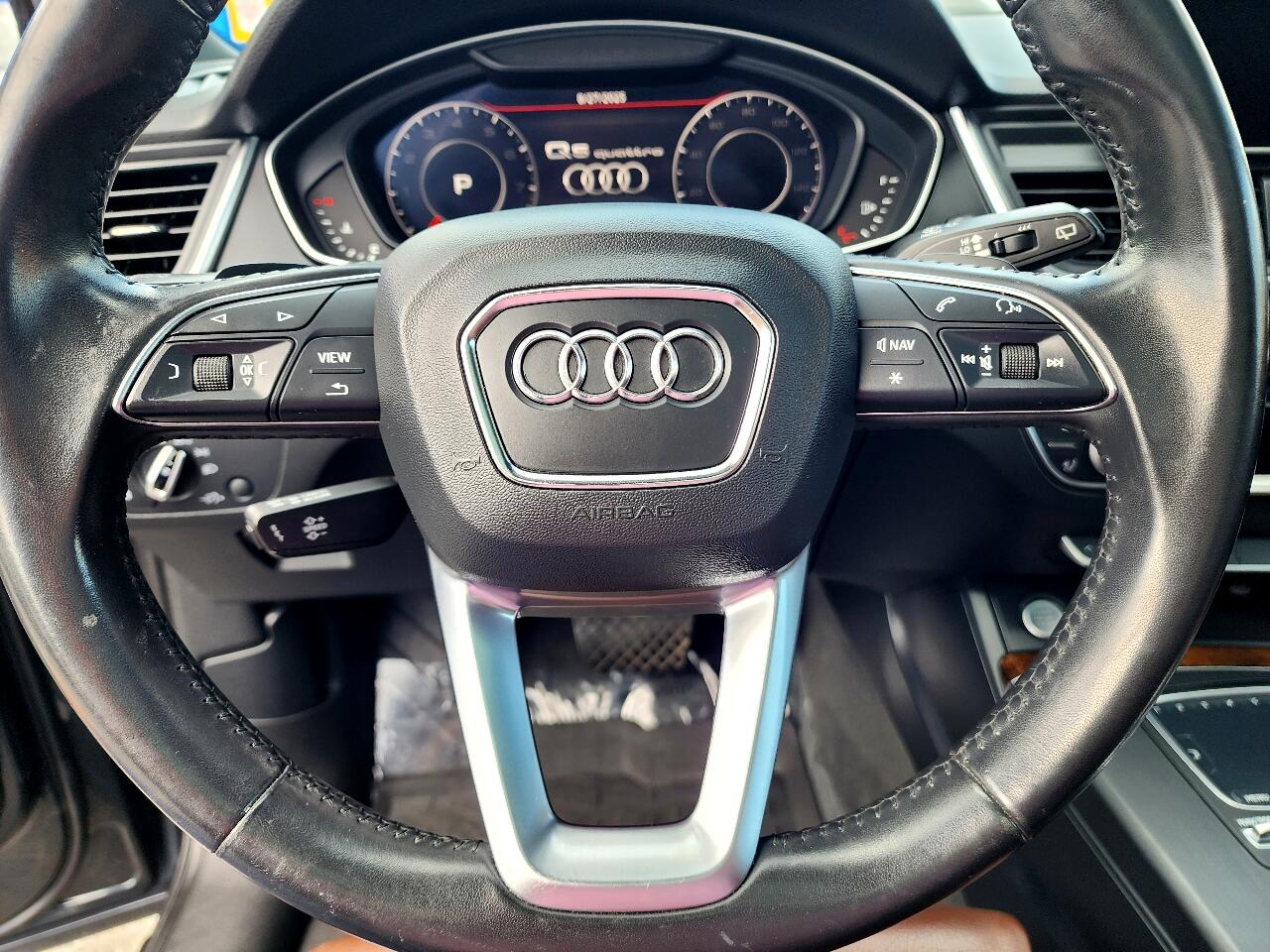 This Exceptionally Clean 2018 Audi Q5 2.0T Quattro Premium Plus is a Local Trade In, Non Smoker and Has Been Well Maintained with over 25 Reported Service Records to Carfax, It is All-Wheel Drive and Equipped with a 2.0L Turbocharged 4 Cylinder Engine that gets up to 27 mpg, Automatic Transmission, Dual Power Heated and Cooled Leather Seats, Wood Grain Trim, Tinted Windows, Heated Steering Wheel with Redundant Controls, Hands Free Phone, Automatic Climate Control, Bang and Olufsen Stereo, Dual Navigation, Rear Camera, Blind Spot Monitoring, Front and Reverse Sensing, Power Panoramic Sunroof, HID Head Lights, Power Rear Liftgate, Traction Control, Roof Rack, Rear Privacy Window Shades, Rear Rubber Mat, Polished Alloy Wheels, New Tires and more!!! Comes with a CARFAX Buyback Guarantee and is Ready for Immediate Delivery. ASC Warranty 3 year / 36,000 mile Extended Service Plans are available on most vehicles. Please verify all information and options with a sales representative.